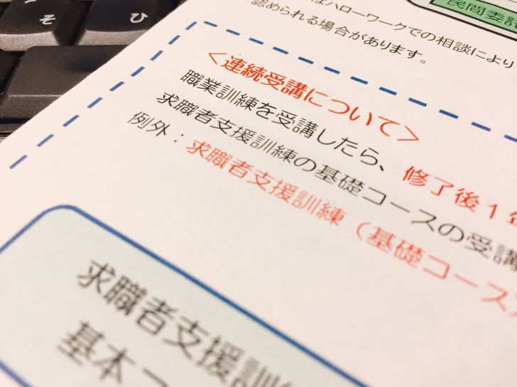 ですが、職業訓練を受講した場合、終了後1年が経過するまでは再び職業訓練の受講は出来ないと決められています。(求職者支援訓練の基礎コースの受講は、前の職業訓練の終了後、2年が経過していないと受講不可)