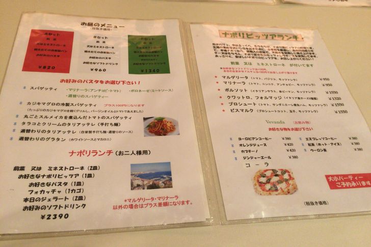 A~Cセットまでのパスタランチやピッツァランチ、ナポリランチなんていう二人用のランチもあります。