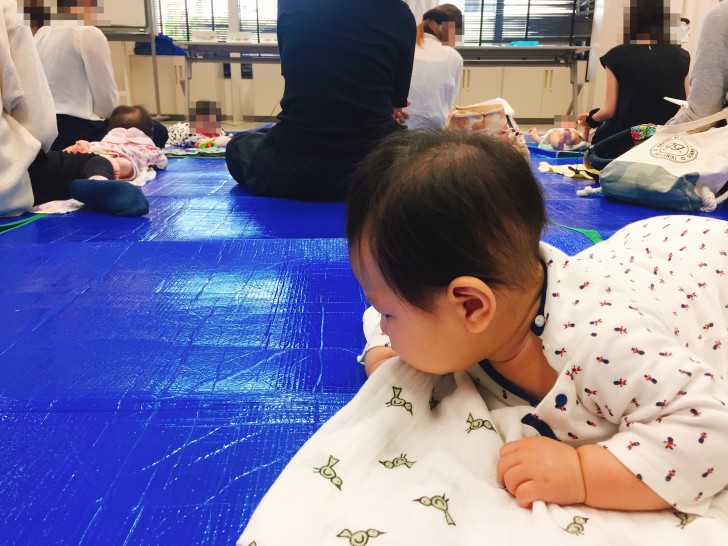 ずりばいが激しい子は、何度も何度もママさんに引き止められたり、お腹が空いたのか授乳室に行くママさんも2組ぐらいいたり。