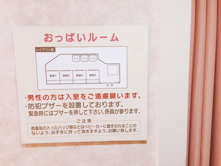 入ると言っても授乳室以外はひらけた空間になっているので、その辺りは開放的で良いかと。