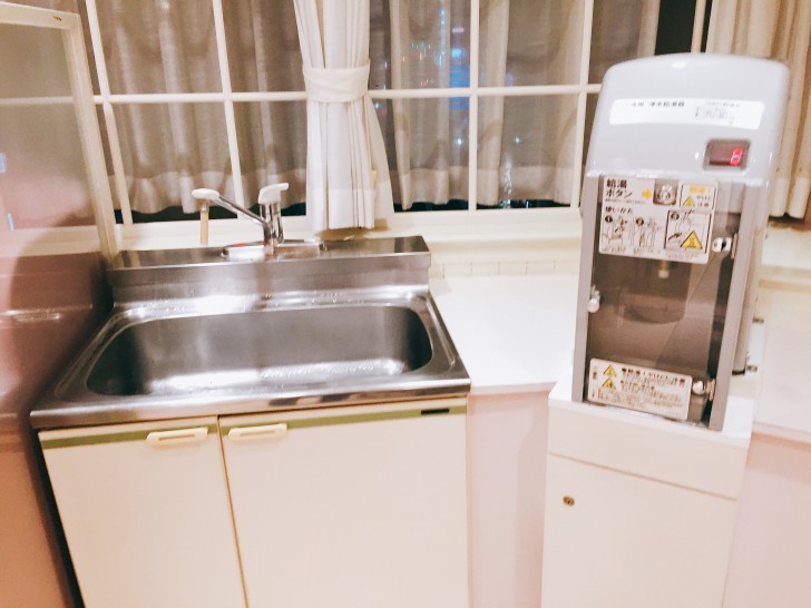 隣には調乳コーナーとして、洗い場と給湯器も設置されていました。