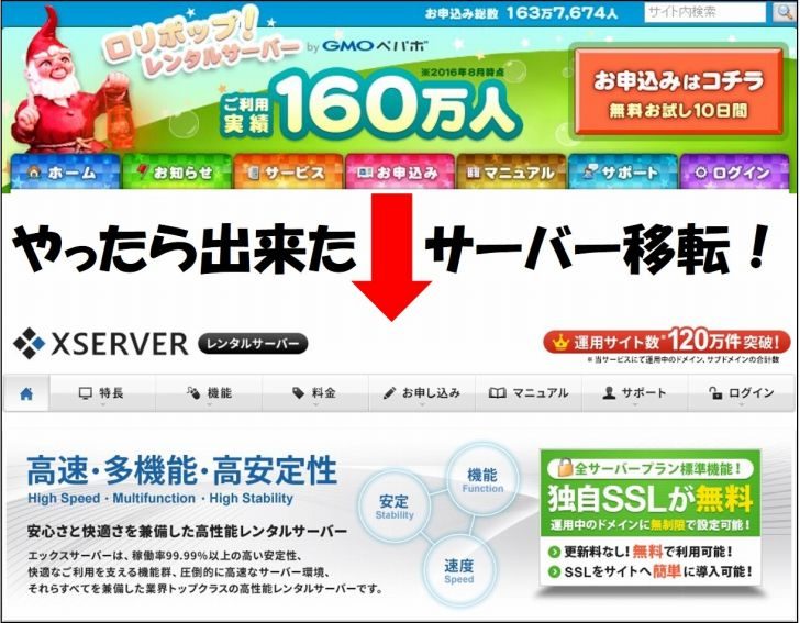 やったら出来たサーバー移転!ロリポップからエックスサーバーへ!サクサク動いて最高!