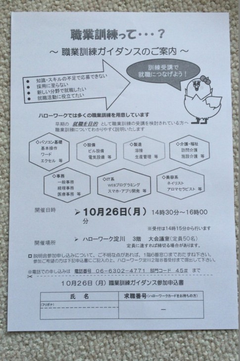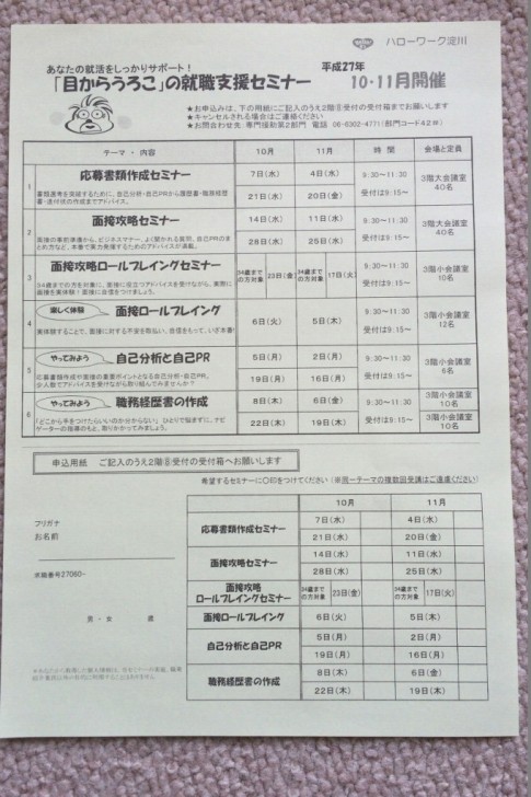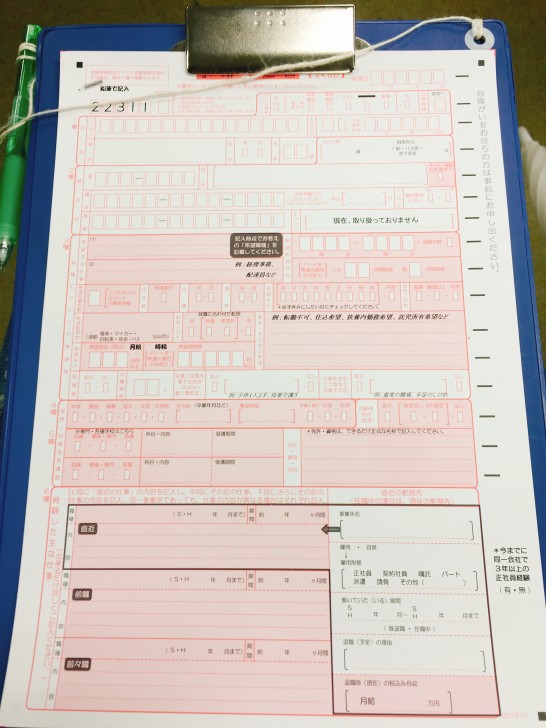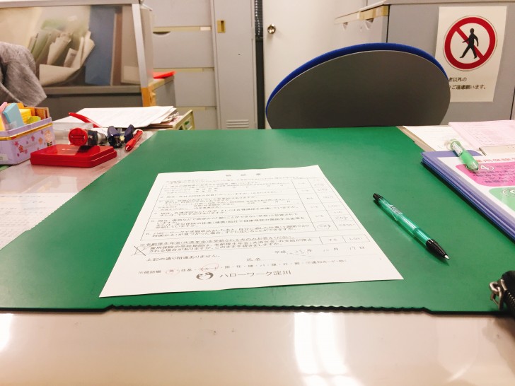 「2階に上がって14番窓口の発券機を取ってお待ちください。その間に求職申込書に記入しておいてください」と渡されました。
