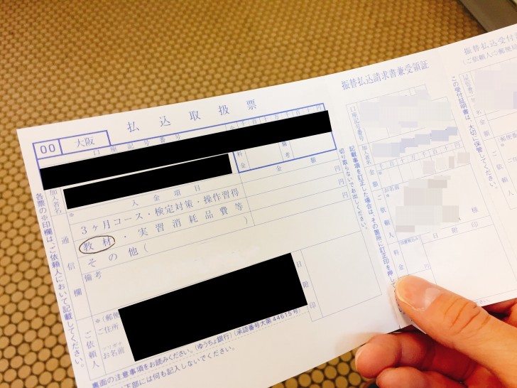 入校式の翌日に教材配布となっていたため、ハローワークが終わった足でそのまま郵便局で支払ってきました。