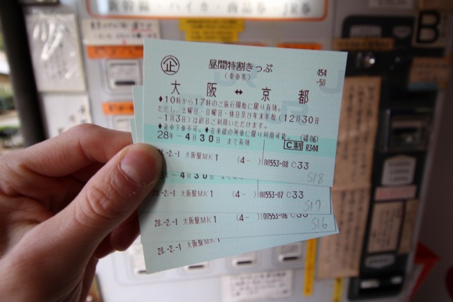 区間が【京都⇔大阪】の昼特きっぷも、【京都⇔新大阪】も値段は同じ1枚単価で言うと350円です。