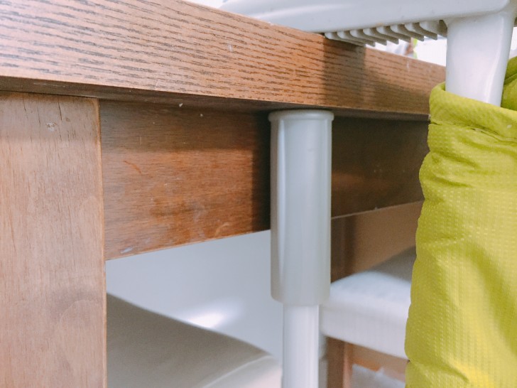 ダイニングテーブルがちょっと特殊なのか、天板があって、そこから少し内側に入ったところに支える板があるタイプになっています。