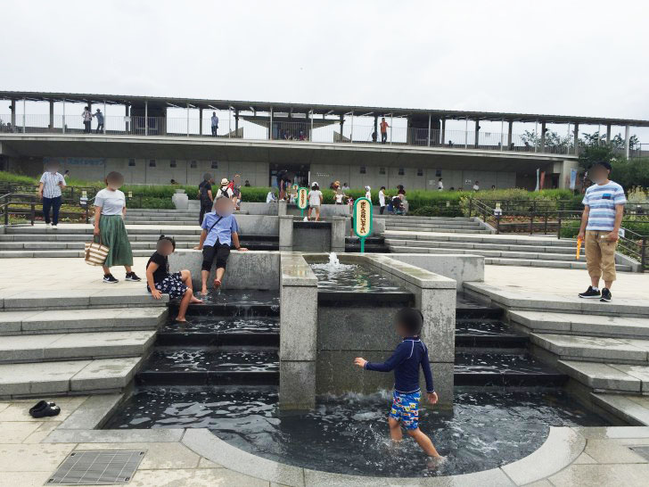 水遊びのできる噴水やスカイテラスと呼ばれる展望台が設置されているエリアです。