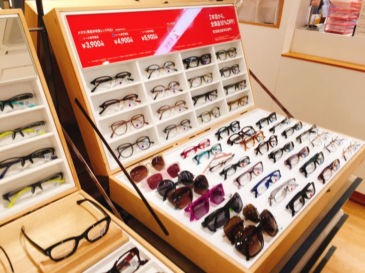 とは言っても、自分の骨格に合うのかどうかは実際にかけてみたいと思っていたことや、セールで安くなっているフレームがあるかもしれなかったので実店舗で買うことにしました。