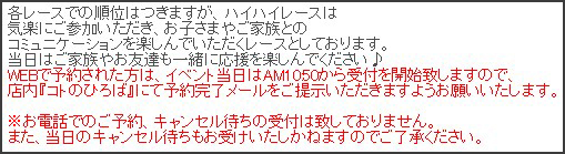 開催時間が11:00〜12:30とメールに書かれていたので、一体3レース目はどれぐらいになるのかな?と思ってましたが、そんなに1レースに時間はかかりません。