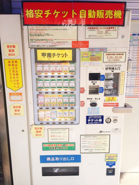 【大阪・難波】格安チケット自動販売機なら金券ショップの営業時間外でも格安の乗車券が購入可能!