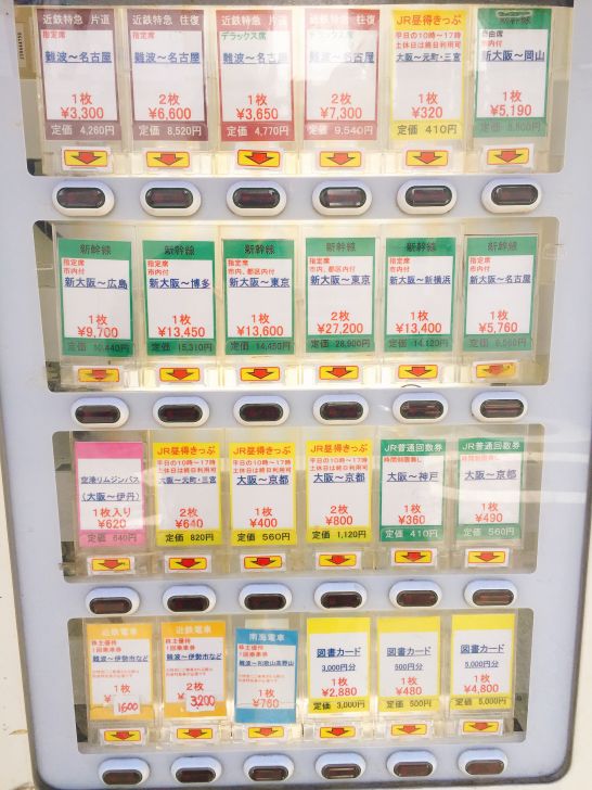難波駅周辺にある格安チケット自動販売機について