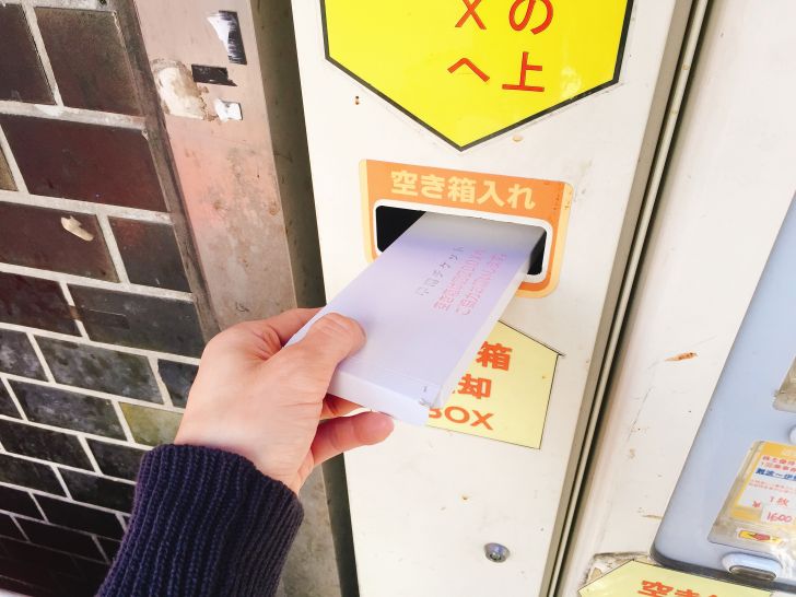 この箱の中にチケットが入っているわけですが、「空き箱は回収BOXへとご協力お願いします。」と書かれています。