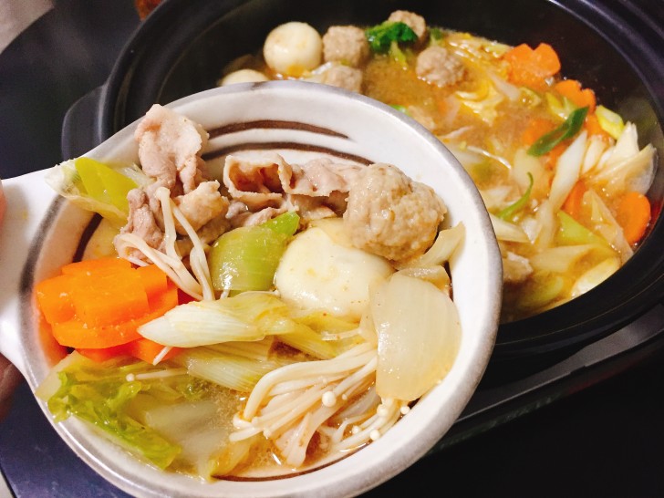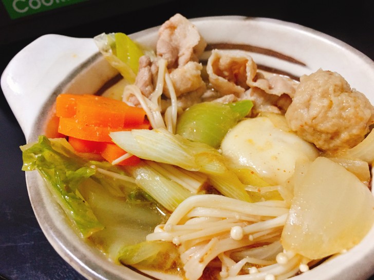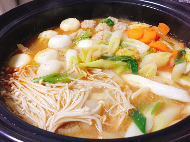 この後にもち餃子ととり団子を加えて、再度煮立たせたら完成です。