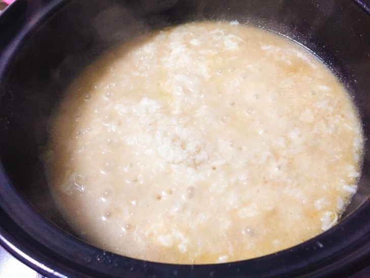 ▼残ったスープに炊いたご飯を入れます。