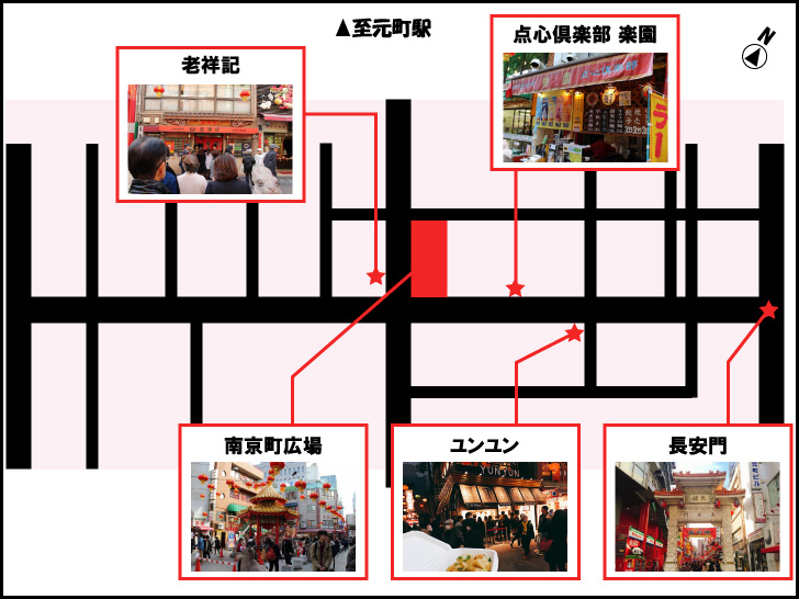右端にある「長安門」というのが、写真撮影にももってこいの南京町入口にある建物です。