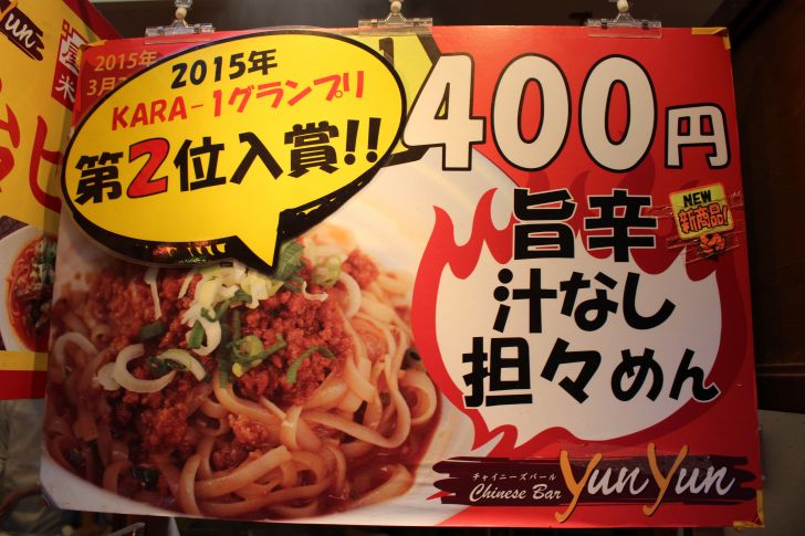 看板にも書かれてる「2015年KARA-1グランプリ 第2位入賞!」という、旨辛汁なし担々めんも注文しました。