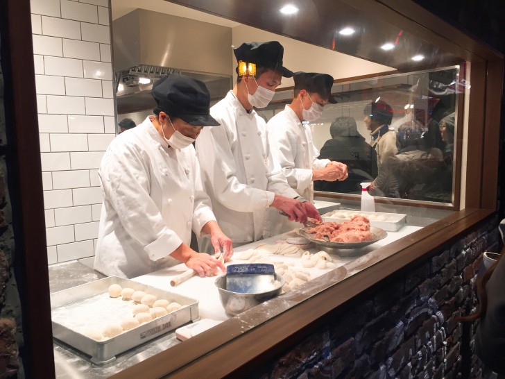 お店の入口前にはウィンドウ越しに作っている人たちを見ることが出来ます。