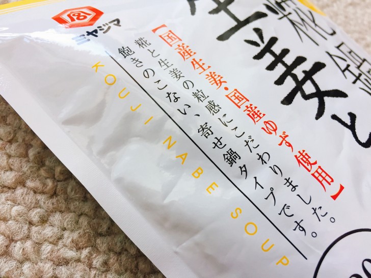 糀鍋スープ生姜とゆずは宮島醤油株式会社から販売されている、寄せ鍋タイプの鍋スープです。