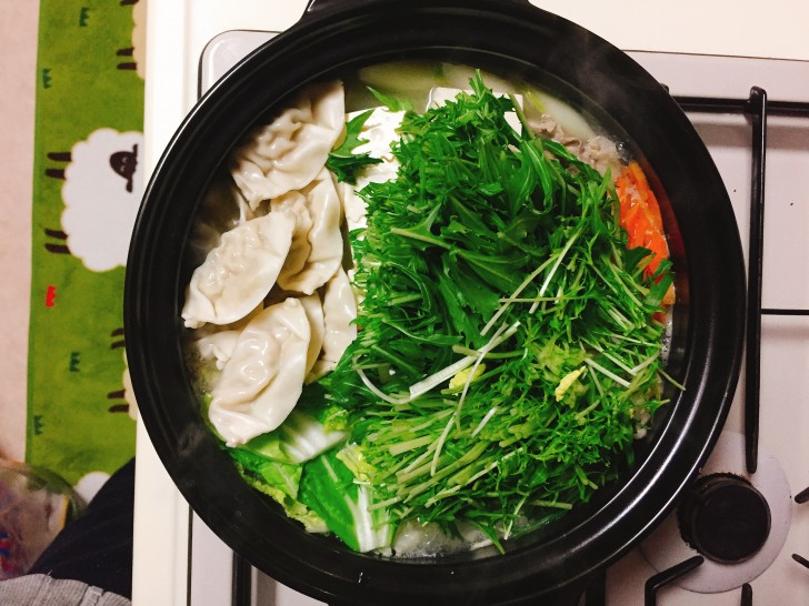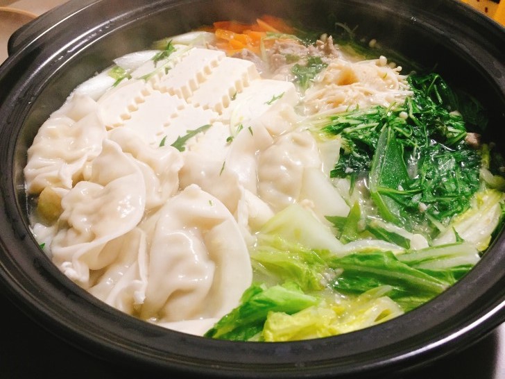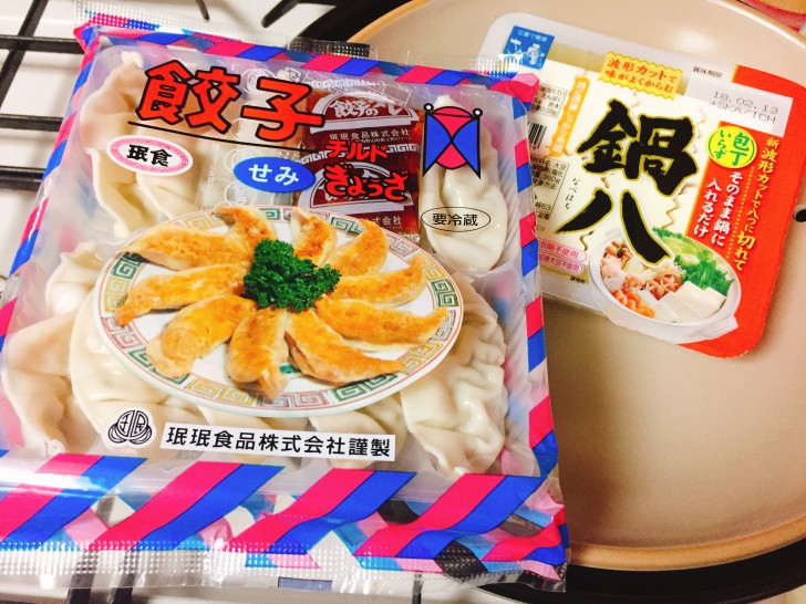 ▼今回は一般的な材料の他、餃子も入れてみることに。