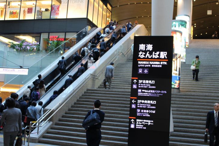 南海難波駅から電車に乗車する場合、必ず進行方向に向かって前2両の車両に乗車する方が良いです。