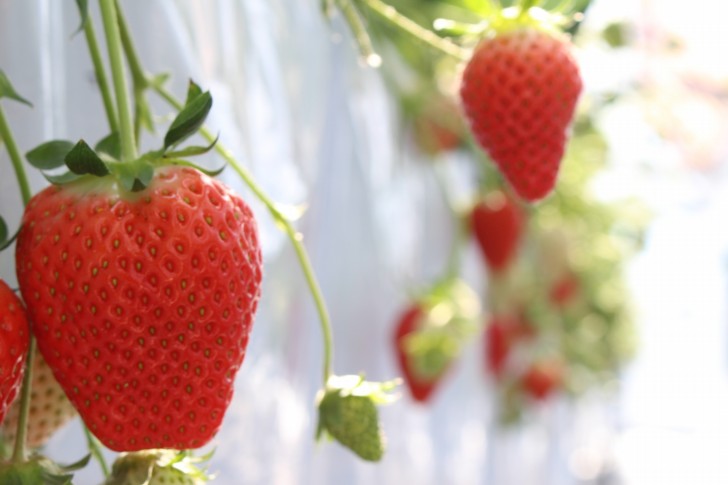 美味しいいちごの見分け方として、イチゴの葉っぱが上を向いているのがジューシーで甘くて美味しいんだとか。