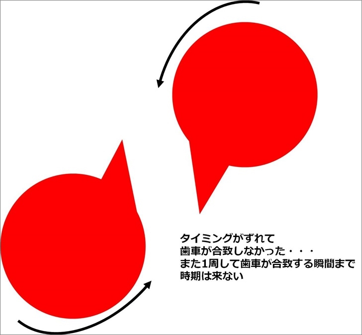 ▼画像で説明するとこういうことです。(これまた僕が作った画像なのであしからず。。。)歯車が一致の図