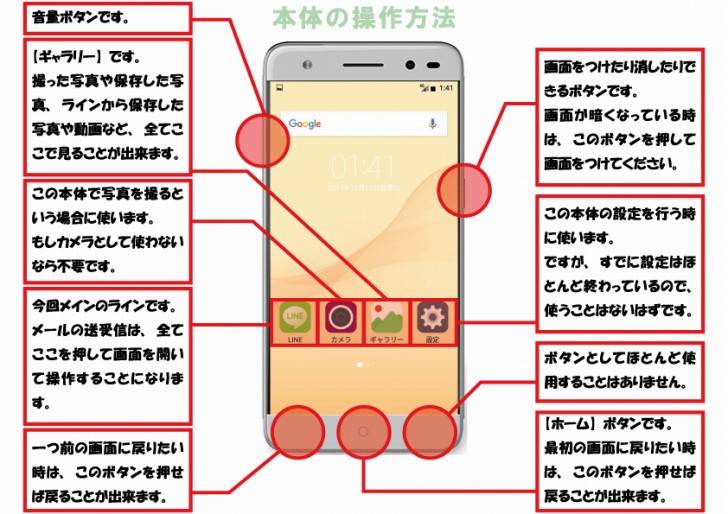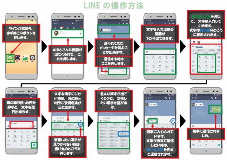 使ってもらおうと思っていたのはLINEだったので、その送受信に絞った操作方法の説明書です。