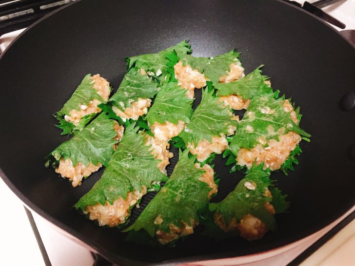 我が家の大好物でもある大葉で包んだつくねハンバーグです。