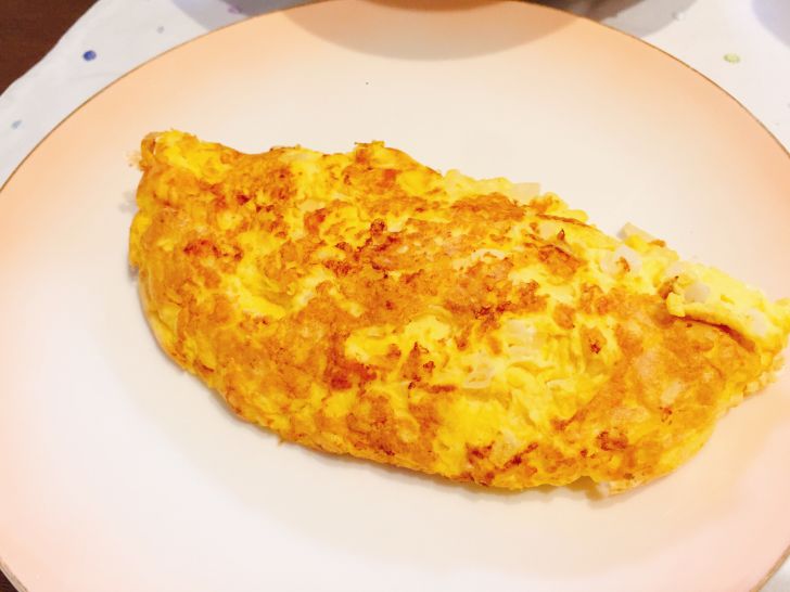 ちなみにこのオムレツは僕が間違えて、油を少量引いて作ってしまいました。