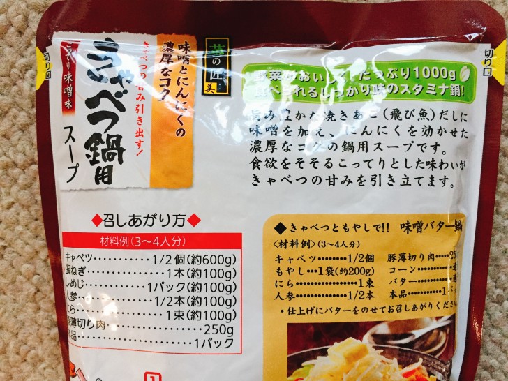 きゃべつ鍋用スープ こってり味噌味 / まとめ