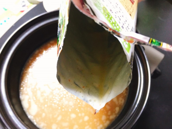 ストレートタイプなので特に混ぜる必要なく、スープに具材を入れて煮立たせればすぐ食べられます。