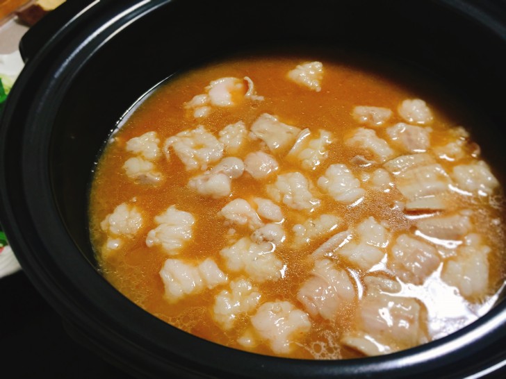 もし作り方例に載っている豚肉でやる場合には、全く意見のない鍋スープになっていたに違いありません。