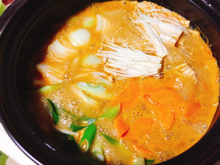 材料に豚ひき肉があれば、担々鍋っぽさが増すようです。