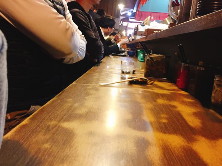 店内はそんなに大きくなくて、上記写真のように4名掛けのテーブル席が2卓と、あとはカウンター席が15席ぐらいの造りになっています。