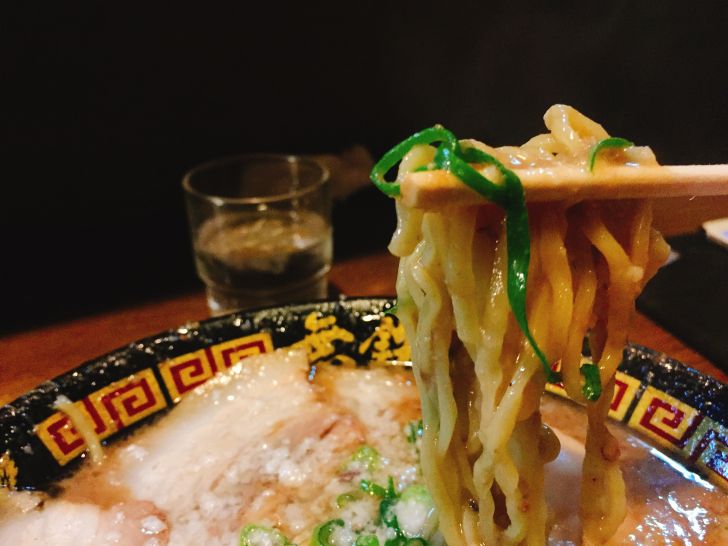 麺・かため、スープ・こってり、ネギ・多めの無鉄砲ラーメンはこちら!