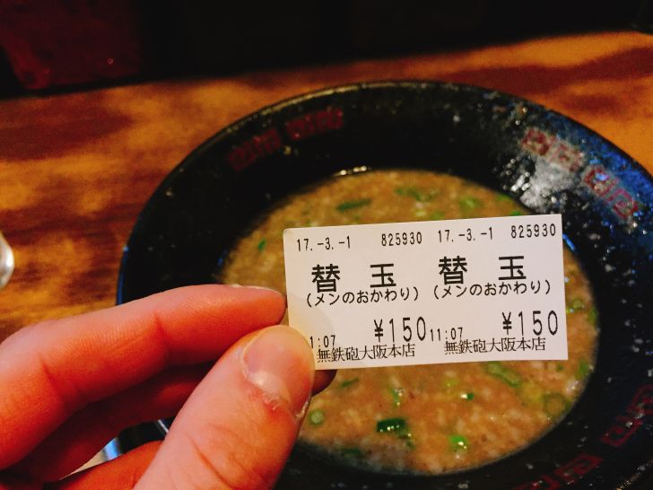 店員さんに「替玉をお願いします」と言えば、その場で現金精算をして食券を渡してくれます。(替玉は150円)