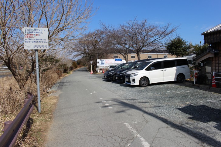 その橋を渡ったところに駐車場があります。