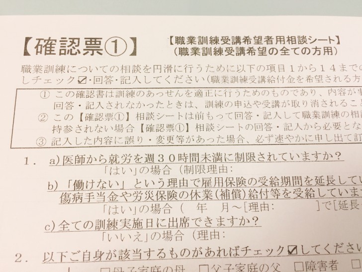 9月の1週目に会社の有休を使ってハローワークに行き、11月から始まる職業訓練に応募しました。