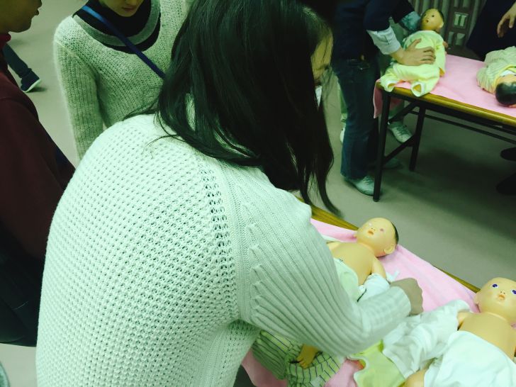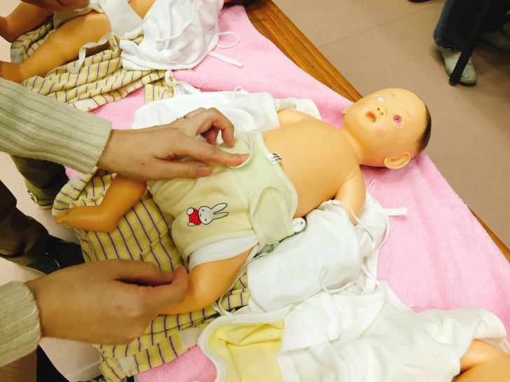 こうやって人形が並んでいるので、実際におむつを交換する体験も出来ます。