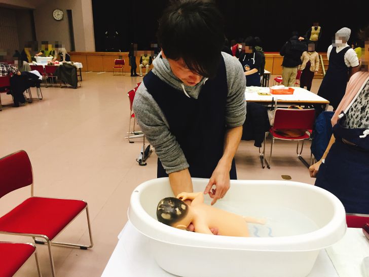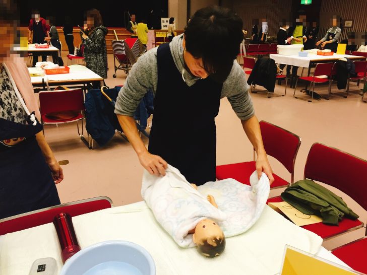 このセミナーでは実際にパパだけが沐浴体験が出来るんです。(後でちゃんと書いています)