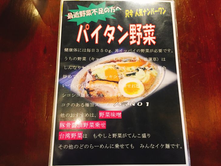 値段がちょこっと安くない?(パイタン野菜は980円)気もしないことはありませんが…それでもまた食べたくなるラーメンでしたよ!