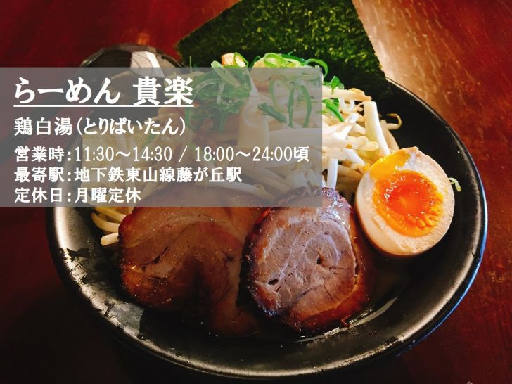 藤が丘駅周辺のおすすめラーメン店にしたい「らーめん 貴楽」をご紹介してみました。