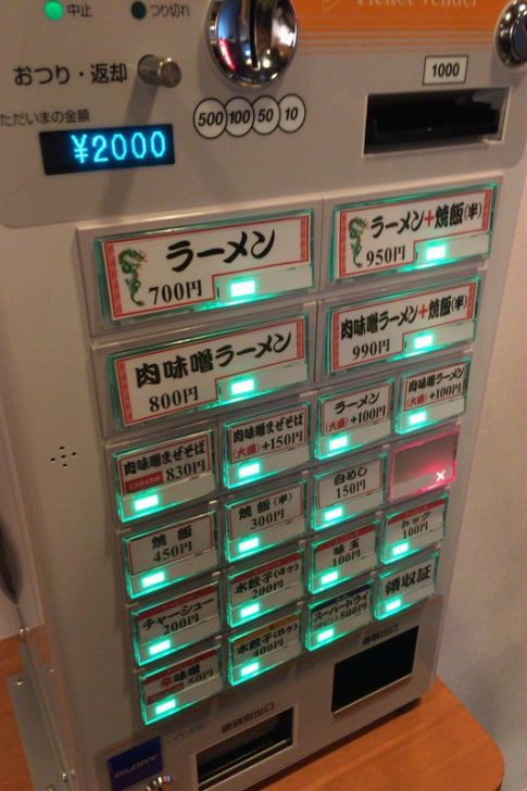 僕は肉味噌まぜそば、妻が肉味噌ラーメン、二人で水餃子も頼もうということで食券を買ったのですが、「水餃子(4ケ)」というものがあります。