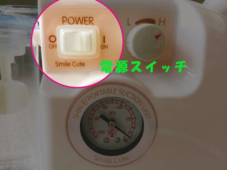 スマイルキュートは調節ダイヤルが付いていて、吸引力を変えることができます。