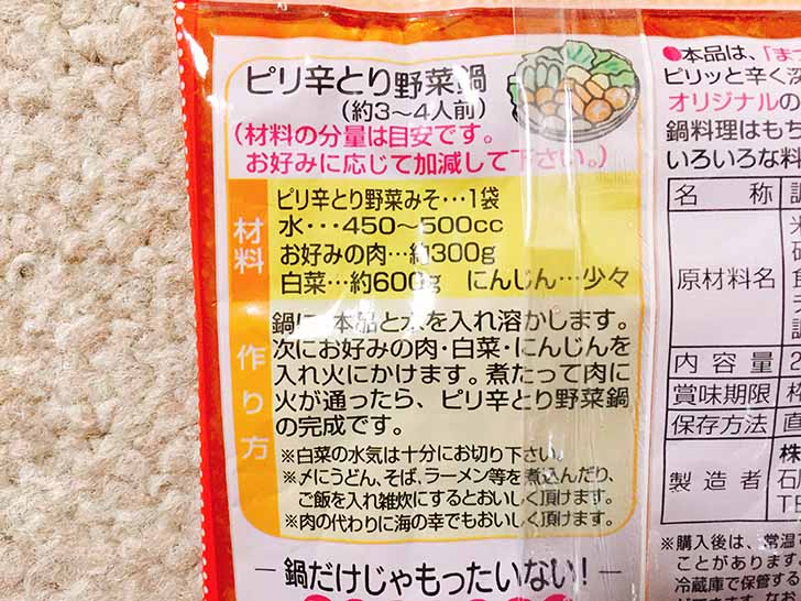 辛いのが好きな人には少し物足りないピリ辛感な気もするし、みそ鍋を楽しみたい人にも少し濃厚感が物足りないかもしれないといったところです。