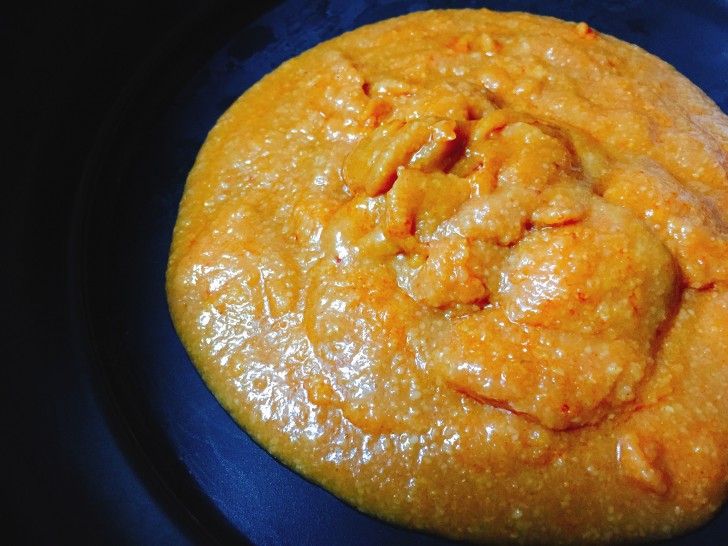 豆板醤が入っているので、少し赤みがかっているところもあります。