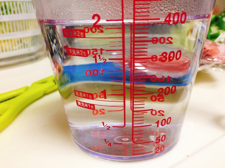 作り方の例では、水は450~500CCとなっていますが、野菜の水分が出ることを想定して、水は400CCで作りました。