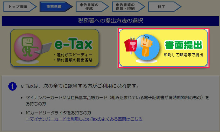 完成した確定申告書類は出力し、税務署へ提出します。