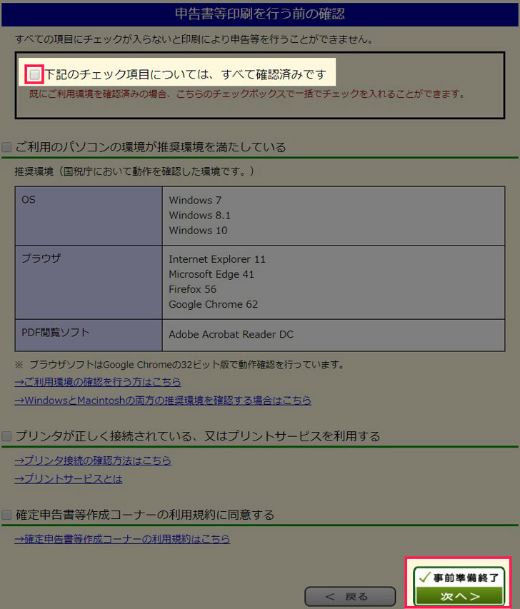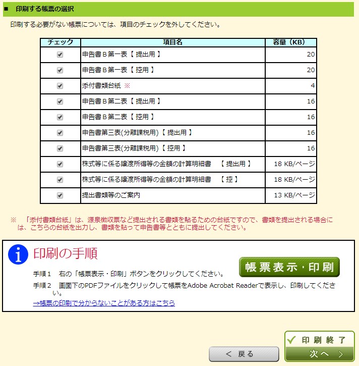 申告書の印刷
