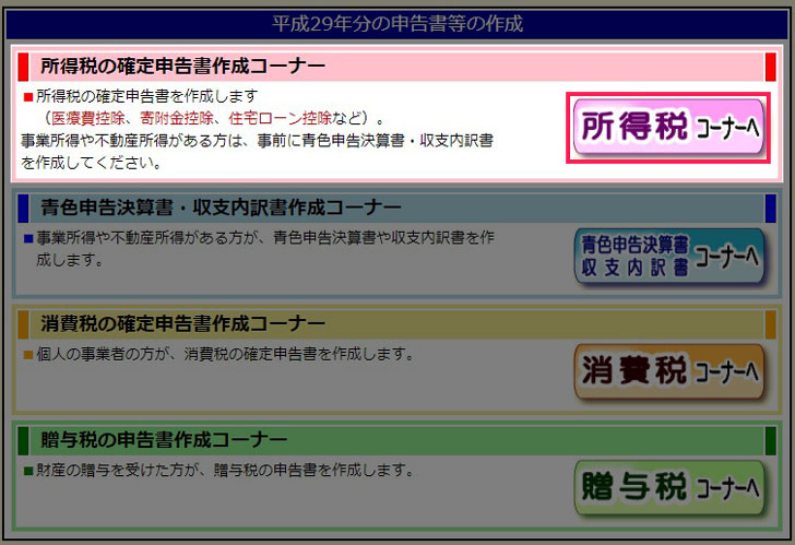 ▼「所得税コーナーへ」をクリックします。